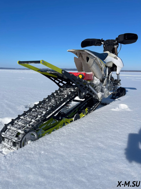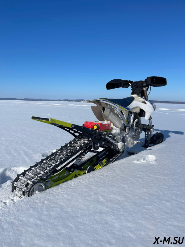 Folk 120 от Snowbike — универсальный гусеничный комплект для внедорожных мотоциклов. Гусеничный мотоцикл (СНОУБАЙК) это, по сути, одноколейный снегоход. Вы получаете возможность продлить мото сезон и эксплуатировать мотоцикл не только летом но и зимой.