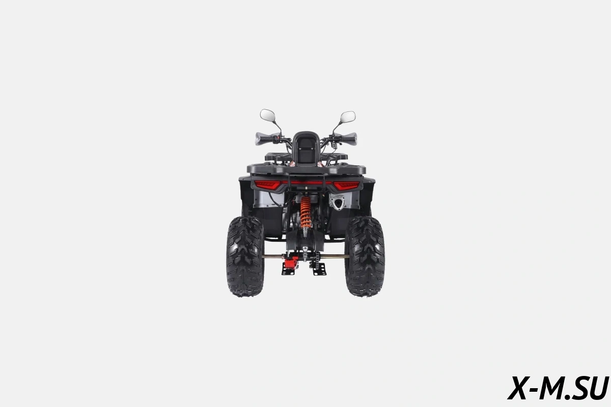 У квадроцикла есть всё необходимое для удобства и безопасности: электростартер, дисковые тормоза, LED-фары, приборная панель, зеркала заднего вида, а также багажные платформы спереди и сзади для перевозки снаряжения или груза. Это делает K4 не только развлекательным транспортом, но и практичным помощником в хозяйстве, на даче или в охотничьих поездках.