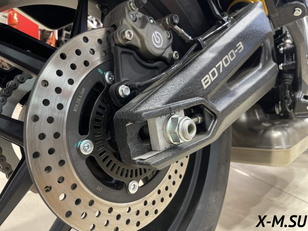 ПЕРЕДНЯЯ ТОРМОЗНАЯ СИСТЕМА - Два плавающих тормозных диска 320мм, 2 радиальных четырёхпоршневых суппорта Brembo